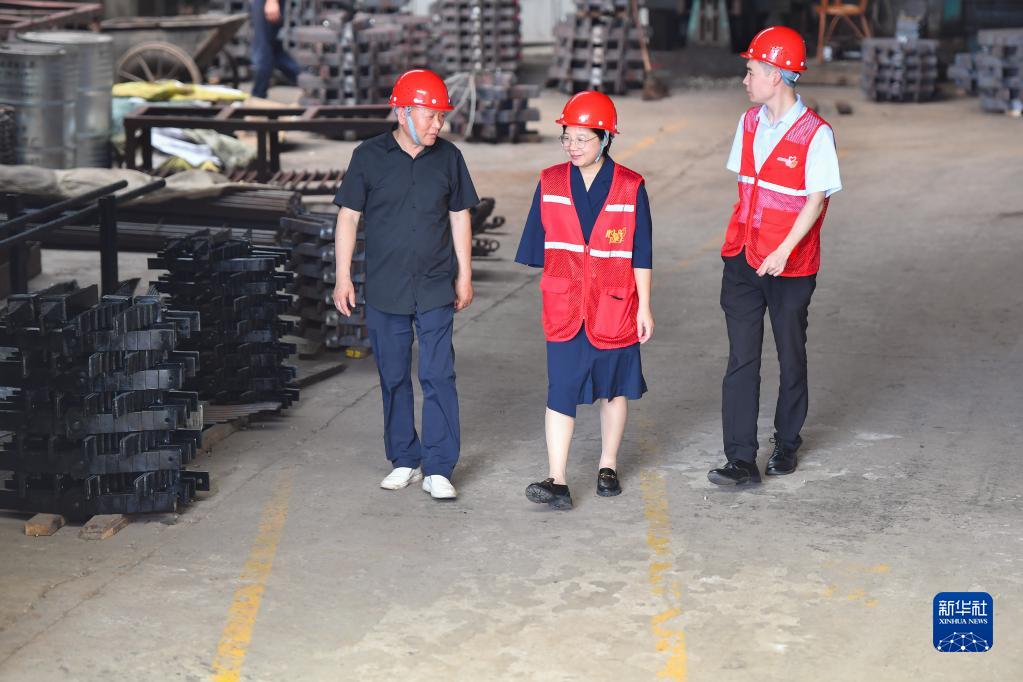 在湘潭市岳塘區一個殘疾人集中就業示范基地,扶婷(中)和法律志愿服務團成員為企業提供免費法律咨詢服務(5月18日攝)。