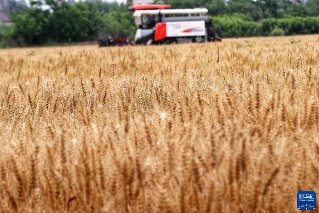 5月20日,在浙江省湖州市德清縣雷甸鎮(zhèn)解放村,農(nóng)民駕駛收割機收獲小麥。