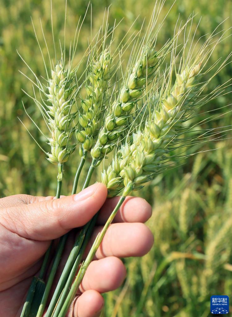 5月20日,在河南省洛陽市汝陽縣柏樹鄉(xiāng)秦停村,農(nóng)民在觀察小麥長勢。