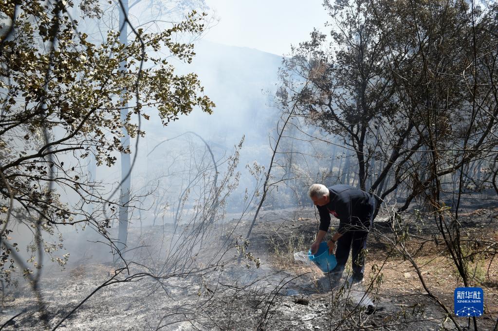 5月19日,一名居民在西班牙埃斯特雷馬杜拉地區(qū)滅火。
