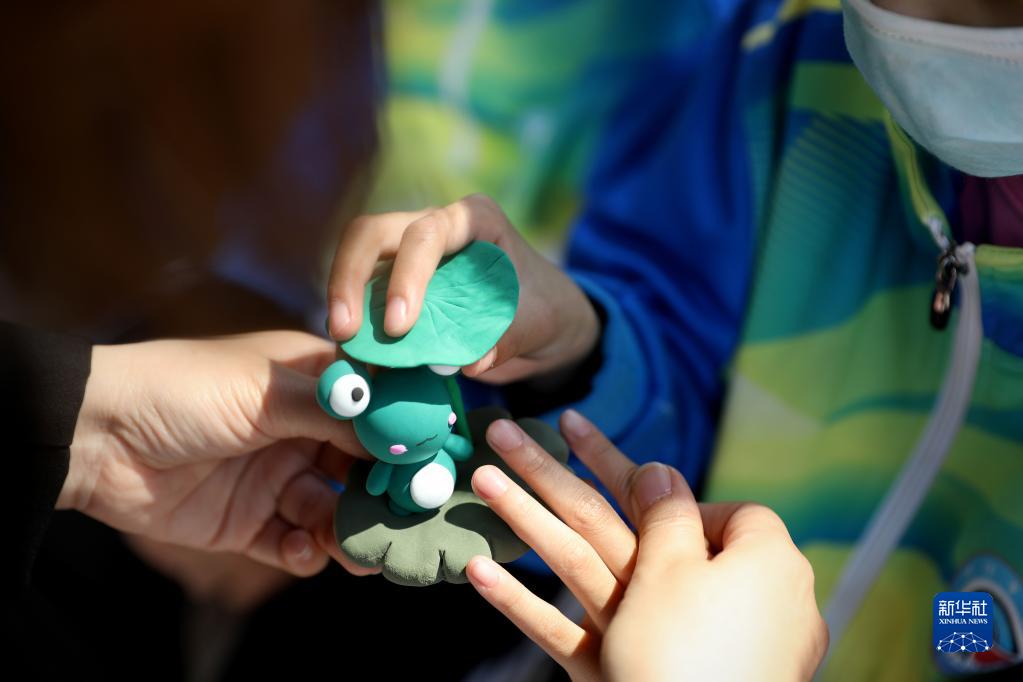 5月18日,手工美術(shù)課上,莊巖握著一名同學(xué)的手,讓他感受手工成品的樣子和細(xì)節(jié)。