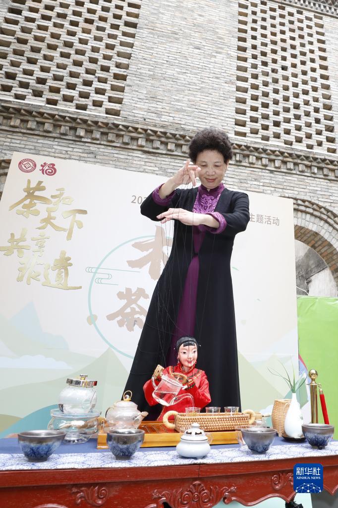 5月21日,在茶文化非遺項目展示交流活動上,工作人員表演木偶茶藝。