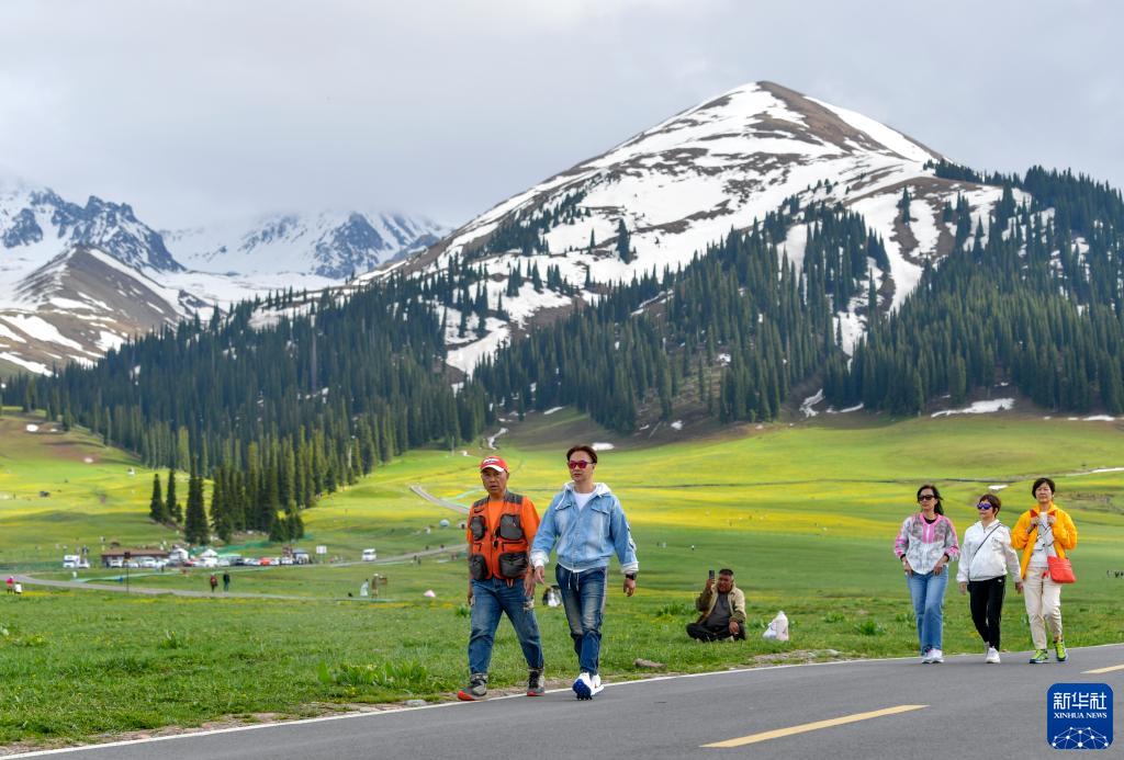 5月19日,游客在位于新疆新源縣的那拉提旅游風(fēng)景區(qū)觀光。