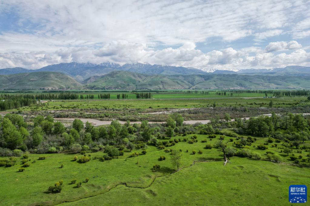 5月20日拍攝的那拉提河谷草原風光(無人機照片)。