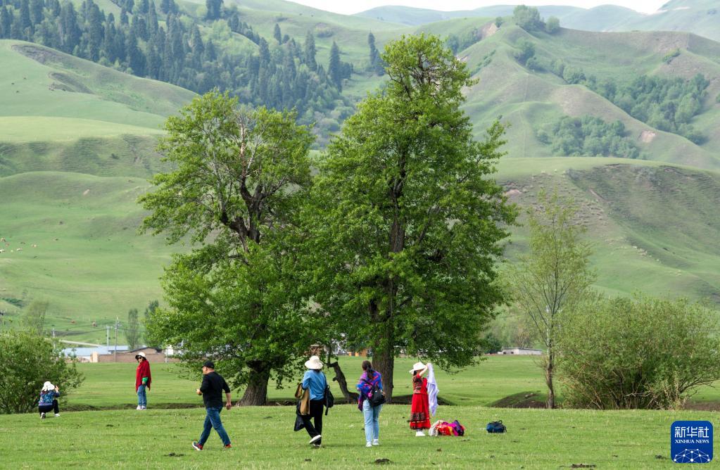 入夏以來,新疆伊犁哈薩克自治州那拉提草原吸引很多游客。據那拉提景區管委會提供的數據顯示,2023年5月1日至20日,景區共接待87462人次游客。