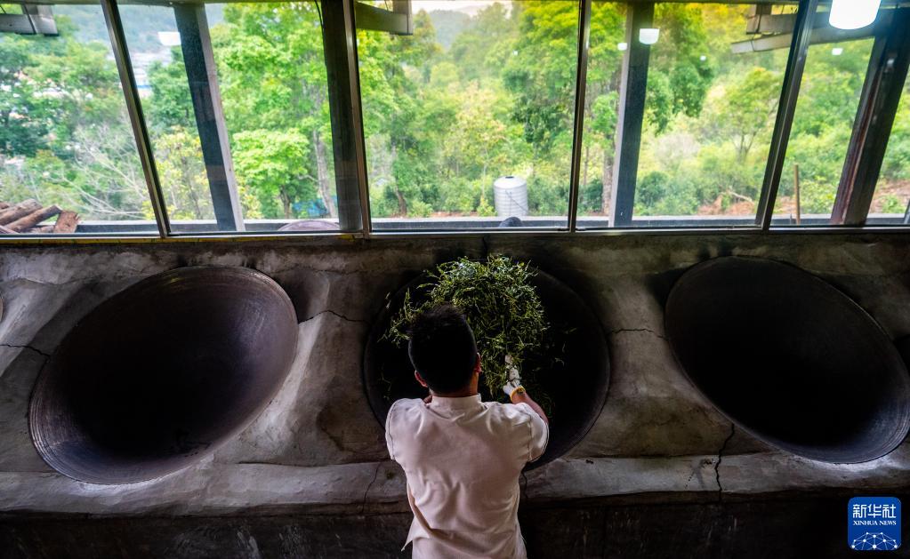 這是2023年5月17日,中國云南省勐??h布朗山布朗族鄉(xiāng)的茶農(nóng)在炒茶。