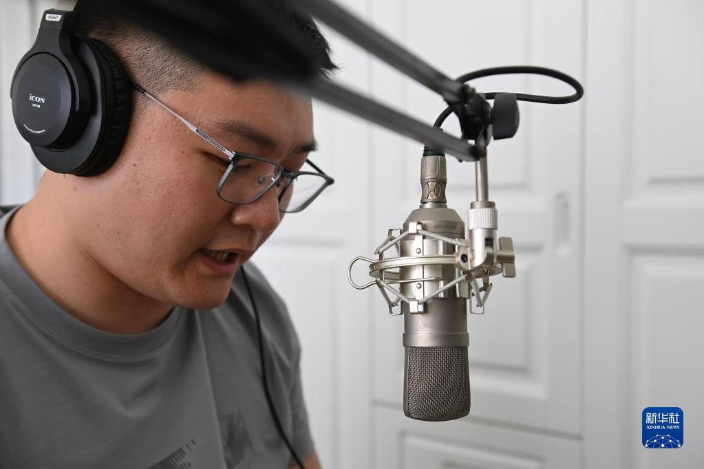 趙強在家里錄制有聲書(4月18日攝)。