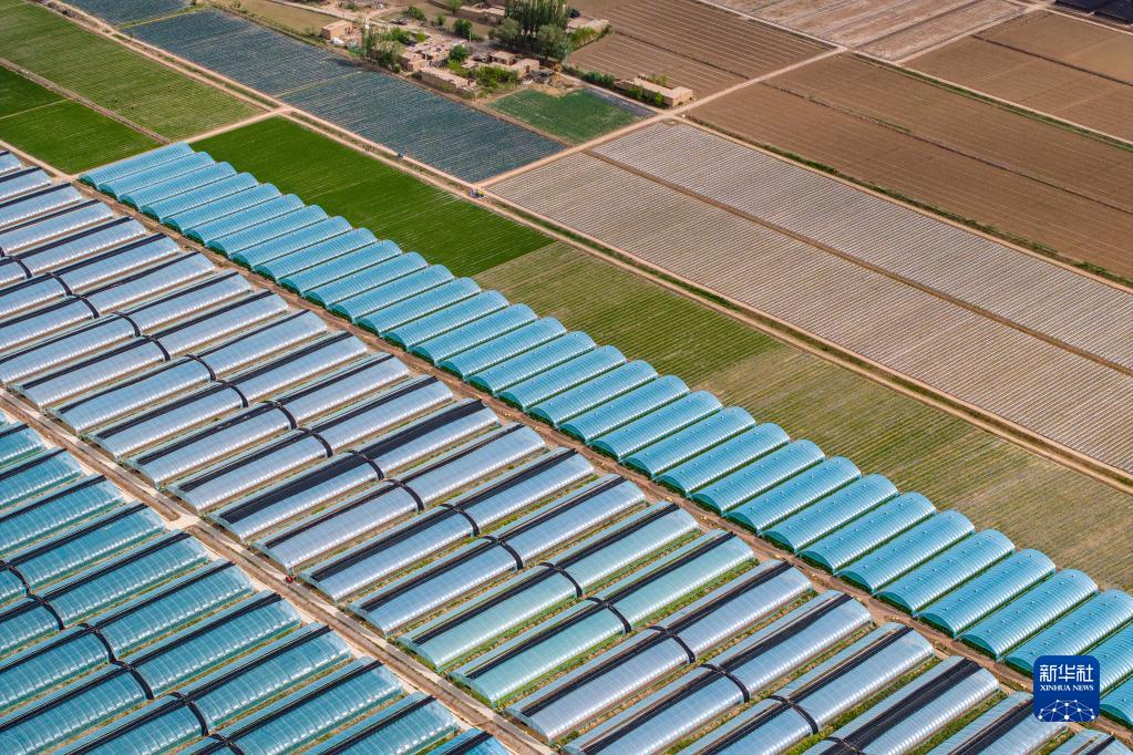 寧夏青銅峽市大壩鎮利民村蔬菜基地(5月20日攝,無人機照片)。