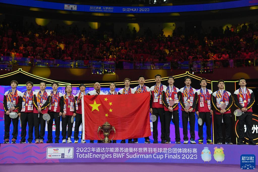 當日,2023年蘇迪曼杯世界羽毛球混合團體錦標賽頒獎儀式在江蘇省蘇州市舉行。中國隊在決賽中以3比0戰勝韓國隊,奪得冠軍。