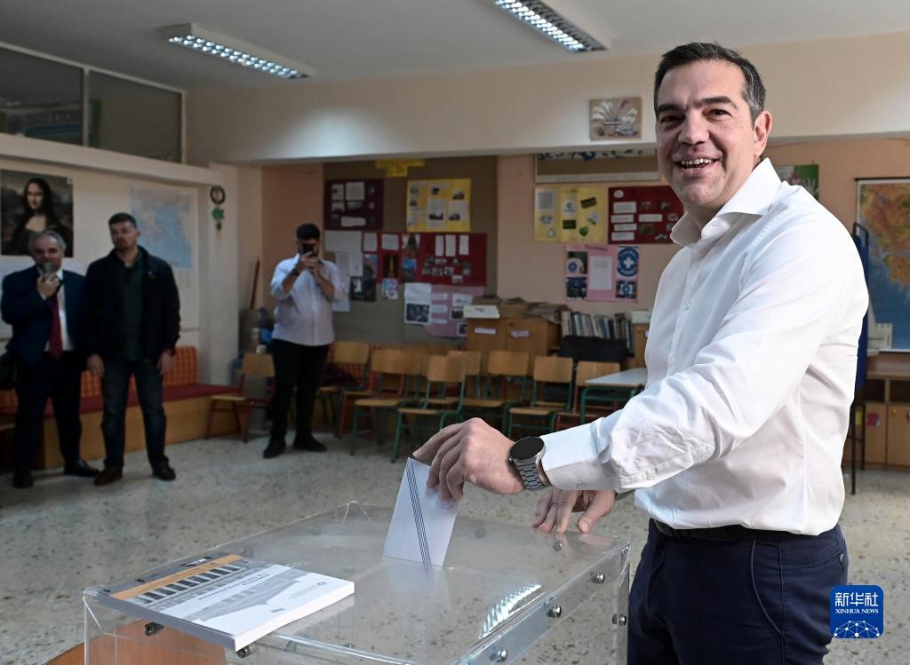 5月21日,希臘前總理、激進左翼聯盟領導人亞歷克西斯·齊普拉斯在雅典一處投票站參加投票。
