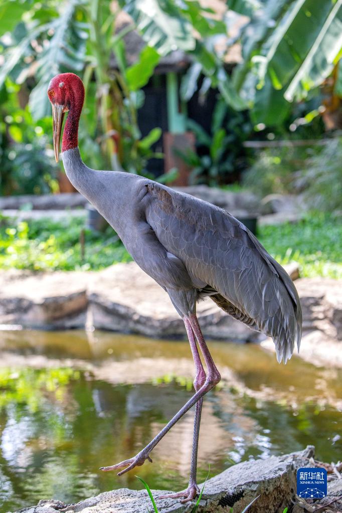 這是5月16日在泰國呵叻府動物園赤頸鶴保育中心拍攝的赤頸鶴。