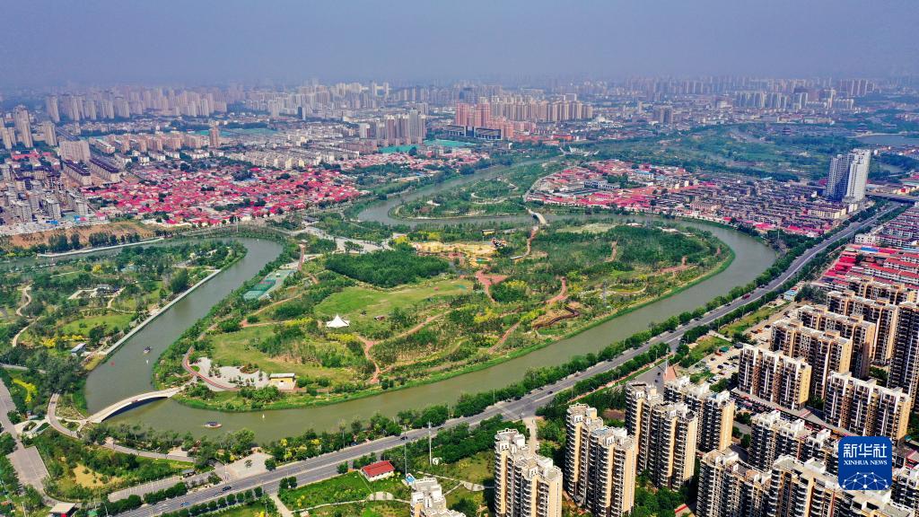 滄州大運河生態修復展示區(5月16日攝,無人機照片)。