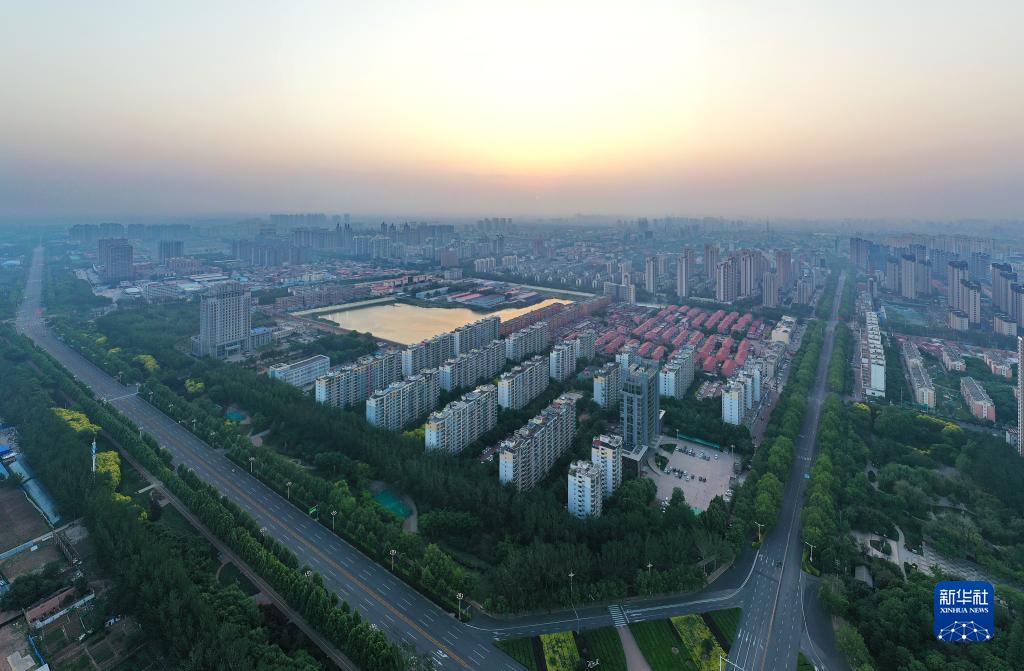 晨光中的滄州市區(5月16日攝,無人機照片)。