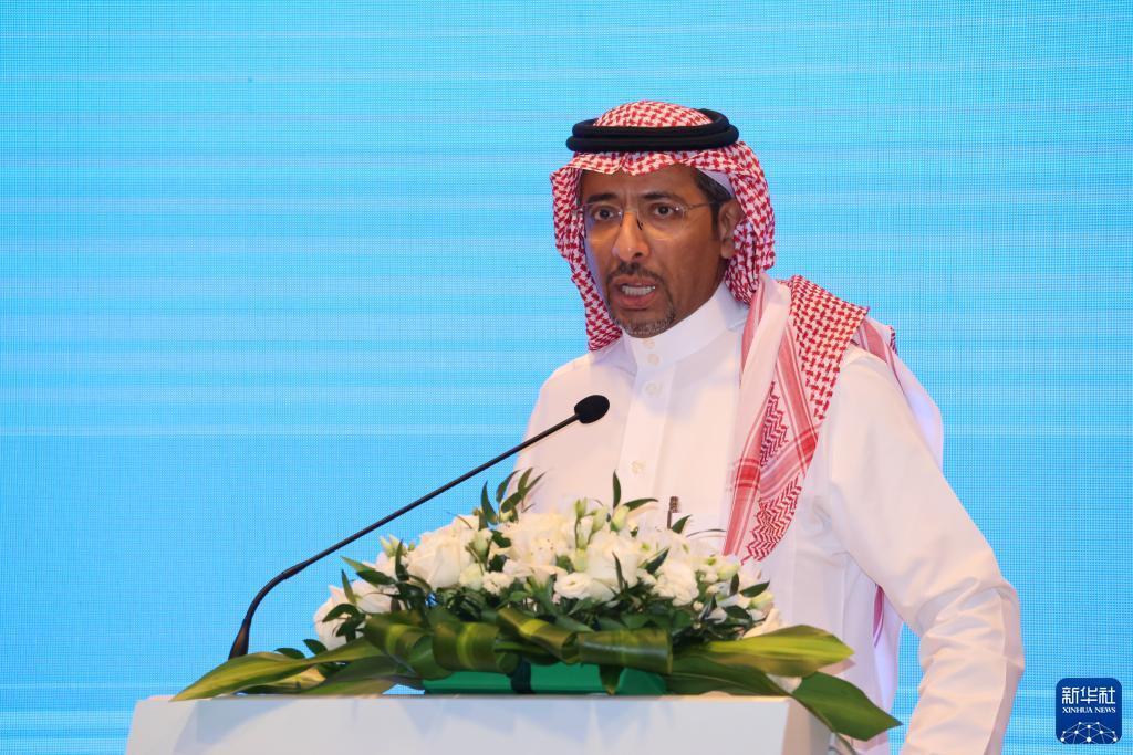 5月21日,在沙特利雅得,沙特工業(yè)和礦產(chǎn)資源大臣班達(dá)爾·胡拉耶夫在中國-阿拉伯國家博覽會推介會上致辭。
