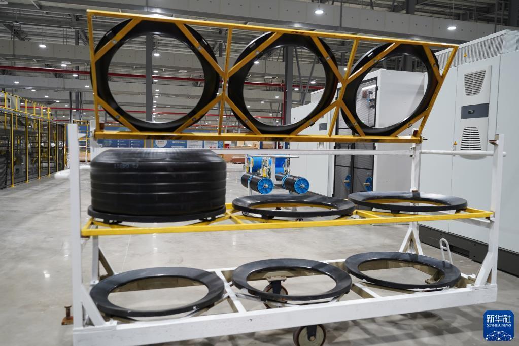 這是5月22日在柬埔寨西哈努克港經(jīng)濟特區(qū)拍攝的通用股份柬埔寨輪胎生產(chǎn)基地內(nèi)部。