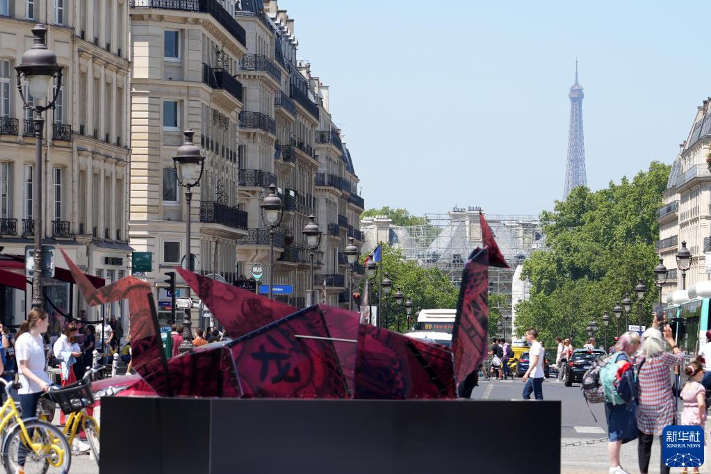 這對“中國龍”折紙造型的雕塑以及巨型畫作,均由法國藝術(shù)家格溫德琳·菲納·德維萊納創(chuàng)作完成。她表示龍在中國文化里具有智慧、力量和福氣的寓意。她希望帶上她設(shè)計的彩龍,從巴黎的先賢祠“起飛”,作為中法兩國和平和友誼的象征,最終于2024年“飛”到中國。