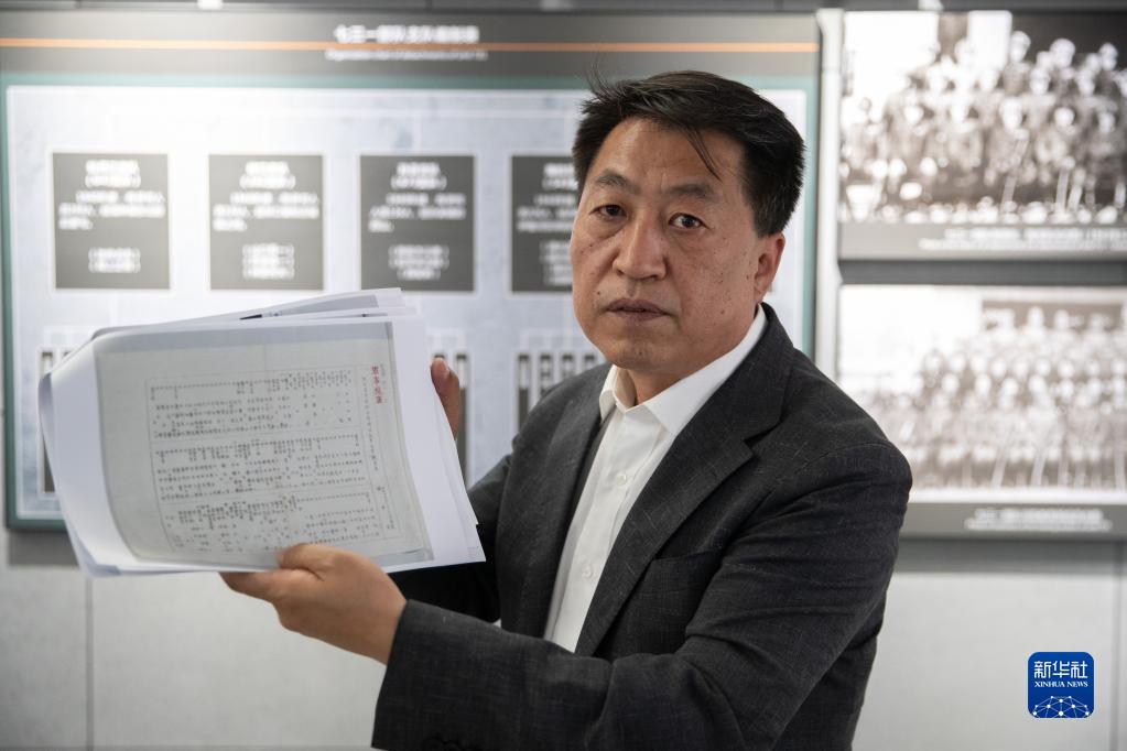 6月1日,在黑龍江外國語學(xué)院國際和平資料館,侵華日軍第七三一部隊(duì)罪證陳列館館長金成民展示新發(fā)現(xiàn)的資料。