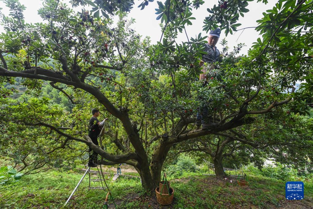 6月12日,在慈溪市橫河鎮(zhèn)梅園村的楊梅園中,種植戶采摘成熟的楊梅。