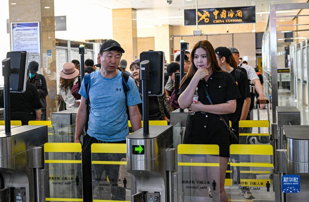 6月11日,旅客從內蒙古出入境邊防檢查總站二連出入境邊防檢查站出境。