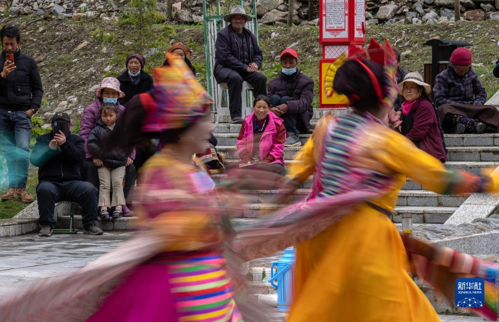 6月10日,玉麥鄉的村民欣賞來自隆子縣的文藝工作者表演的藏戲。