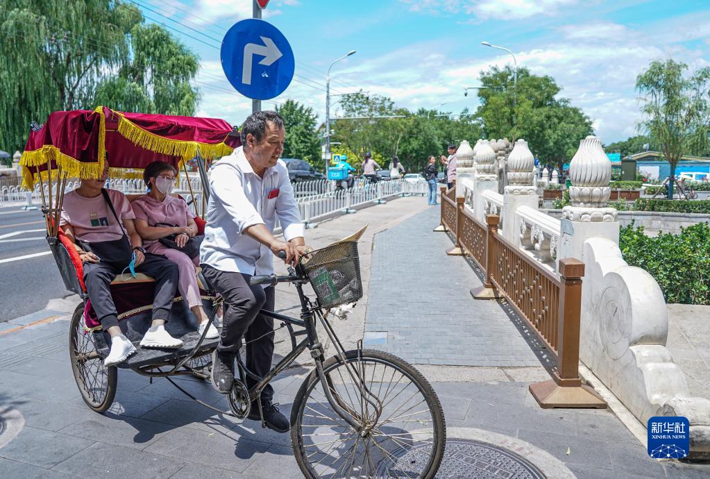 6月11日,游客乘坐人力三輪車經過始建于元代的萬寧橋。新華社記者 陳鐘昊 攝