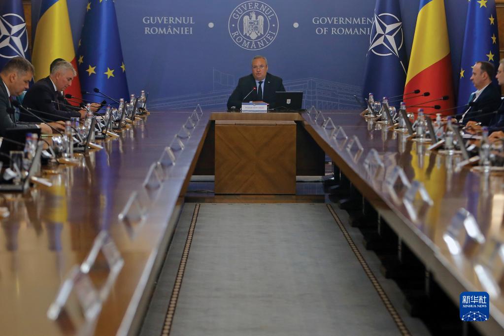 6月11日,羅馬尼亞總理丘克(中)在布加勒斯特出席政府會(huì)議。