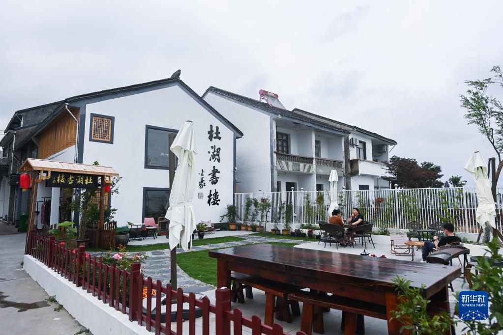6月12日,游客在慈溪市觀海衛鎮雙湖村的一家茶室喝茶聊天,雙湖村是一個坐擁三山兩湖的江南典型村落,東靠杜湖,南鄰白洋湖。近年來,雙湖村努力打造成為獨具農文融合的古村旅游目的地。該村獲得第七批中國歷史文化名鎮古村、浙江省美麗宜居村、浙江省美麗鄉村特色精品村等榮譽。
