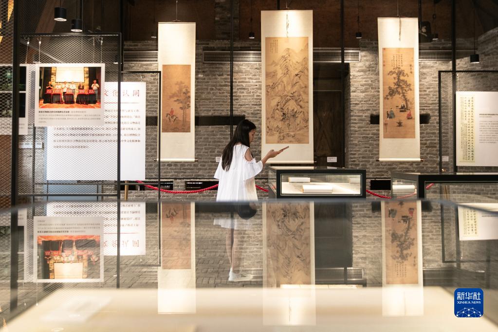6月10日,在重慶市南岸區,游客在重慶故宮文物南遷紀念館展廳內參觀拍照。