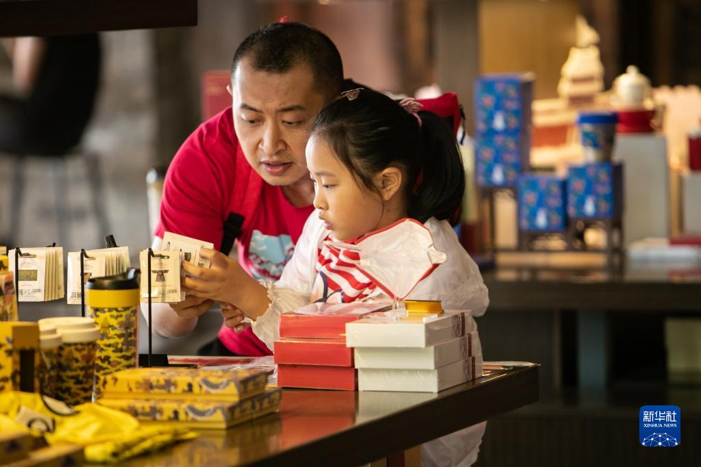 6月10日,在重慶故宮文物南遷紀(jì)念館的角樓咖啡店,顧客在選購(gòu)文創(chuàng)產(chǎn)品。