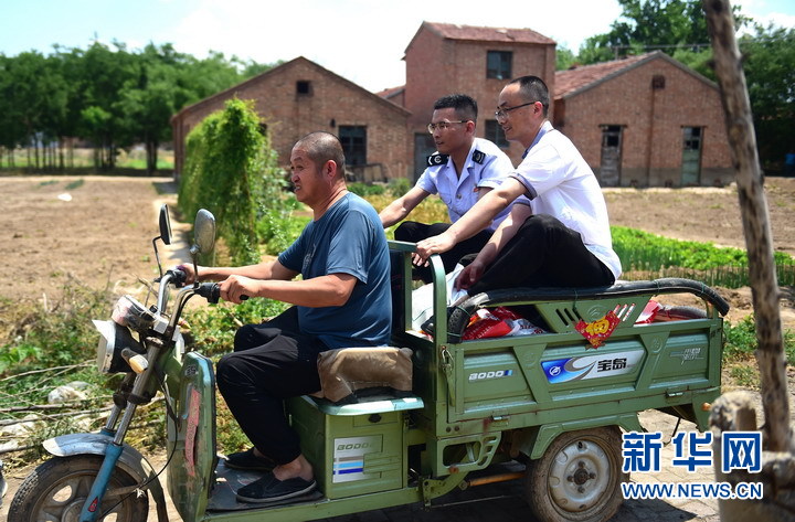 6月13日,黨建聯建活動上稅務人員為農民送去生物飼料。新華網發(常征 攝)