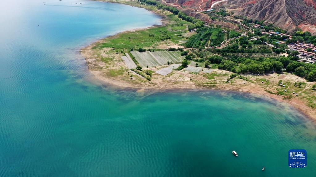位于甘肅省臨夏回族自治州永靖縣境內劉家峽水庫的黃河三灣碧波蕩漾、岸線蜿蜒,片片小舟在水面搖曳,呈現一幅夏日清新畫卷。