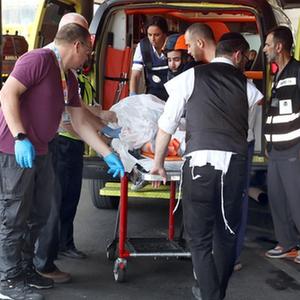 7月4日,在以色列特拉維夫,傷者被送往醫院。