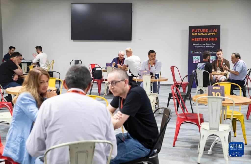 7月5日,人們在以色列特拉維夫人工智能未來大會上討論交流。