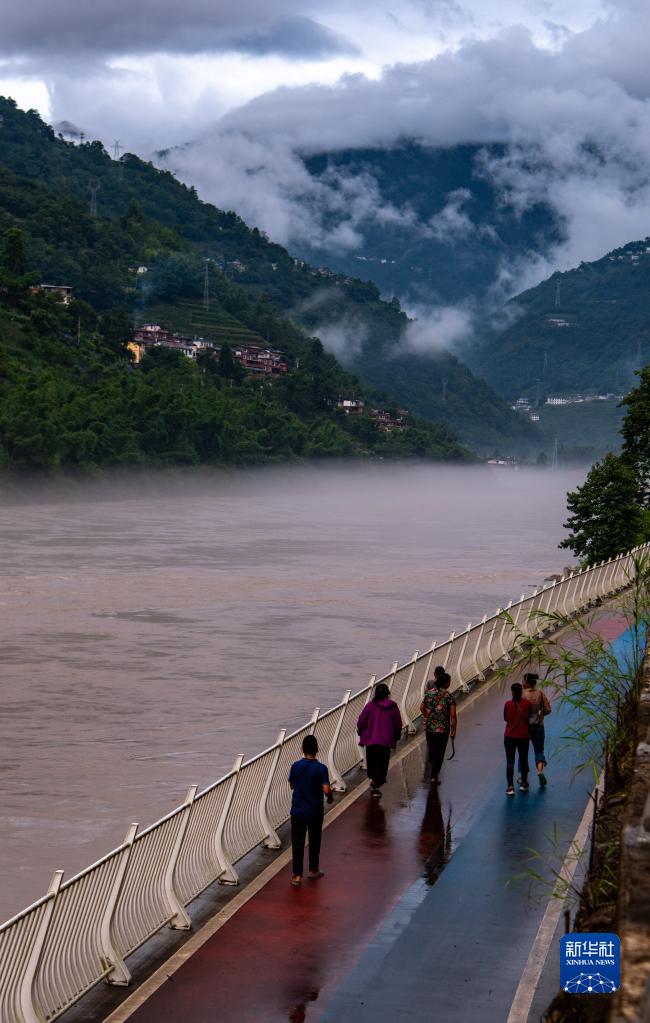 居民在怒江邊步道散步(7月4日攝)。