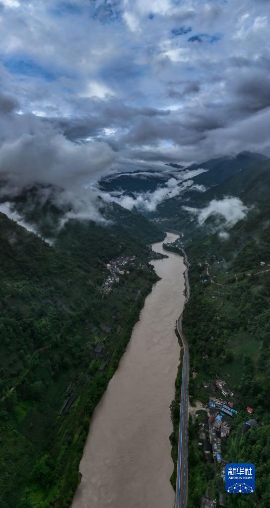 從空中俯瞰云霧間的219國道云南怒江美麗公路段(7月4日攝,無人機照片)。