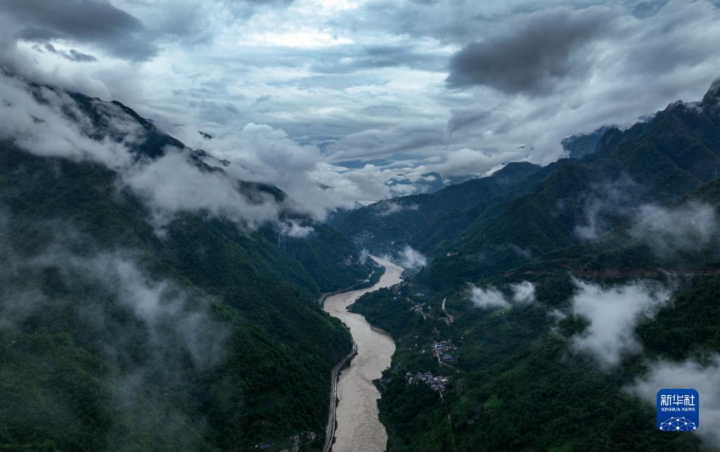 從空中俯瞰云霧間的219國道云南怒江美麗公路段(無人機照片,7月4日攝)。