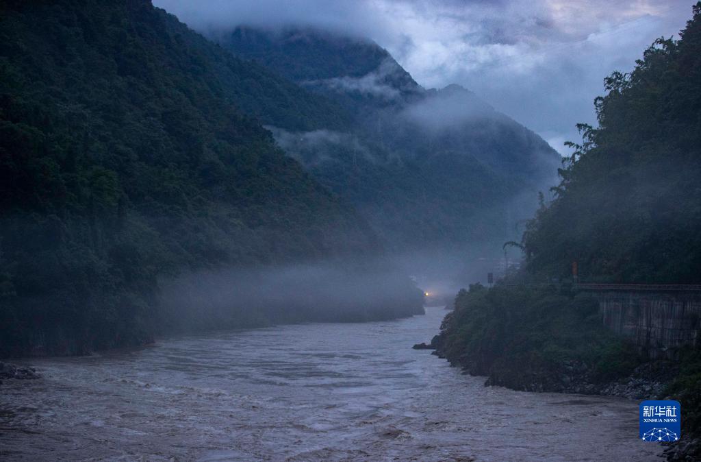 “國(guó)道之行 從雪山奔向大?!眻?bào)道組沿著219國(guó)道來(lái)到云南怒江州貢山縣。傍晚時(shí)分,一層薄霧飄蕩在怒江的江面上,仿佛一條白色的薄紗。