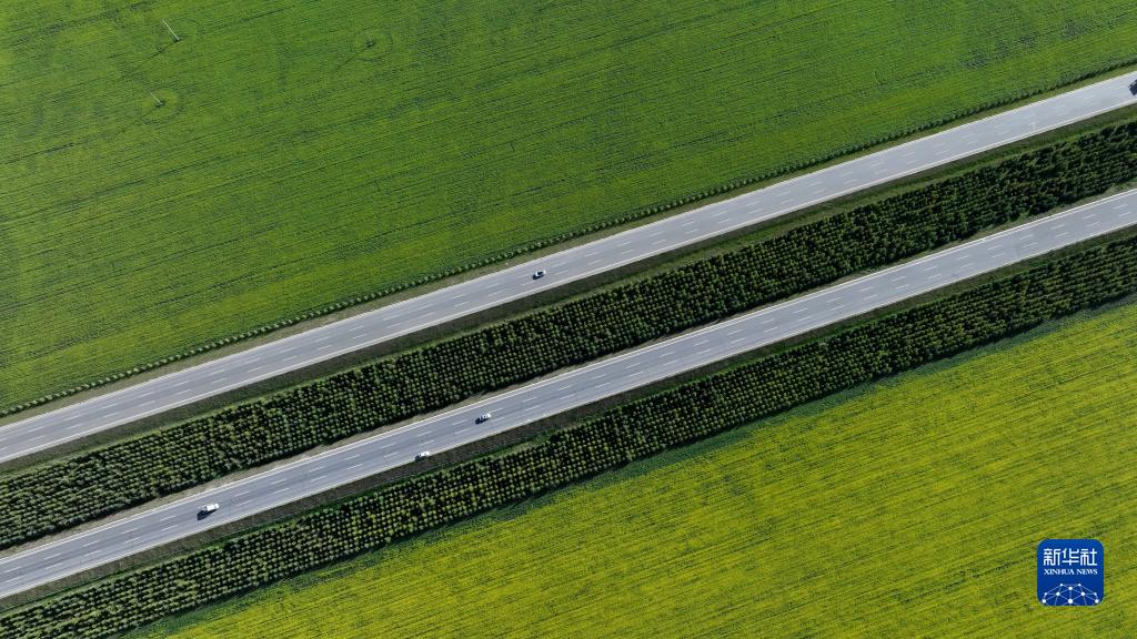 夏日,在位于祁連山腹地的青海省海北藏族自治州門源回族自治縣境內,油菜花競相綻放,花海、雪山、草原共同組成色彩斑斕的祁連山夏日畫卷。