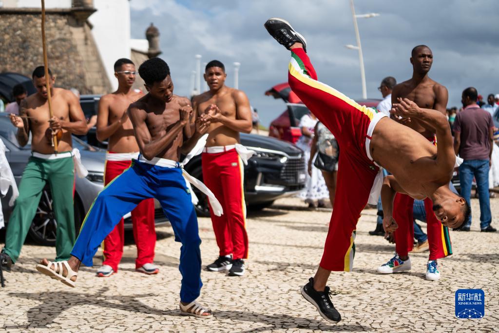 7月4日,在巴西巴伊亞州薩爾瓦多,當地藝人表演巴西戰舞。