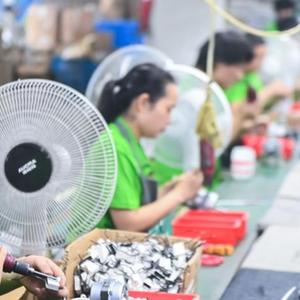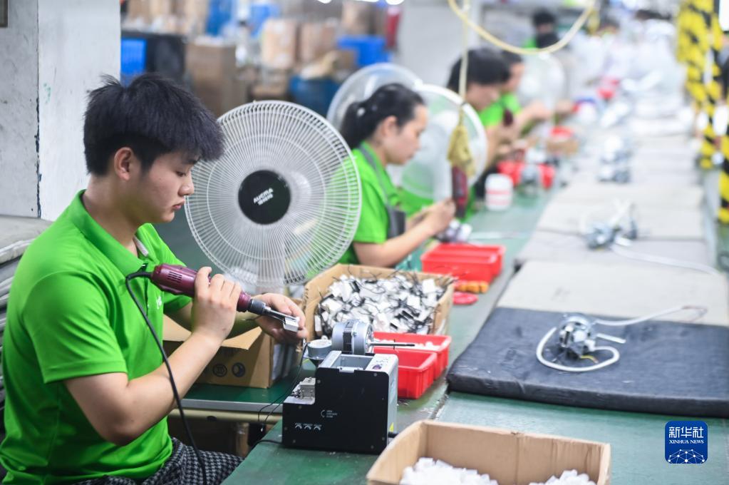 7月6日,工人在位于慈溪市的寧波寧達電器有限公司生產電風扇。