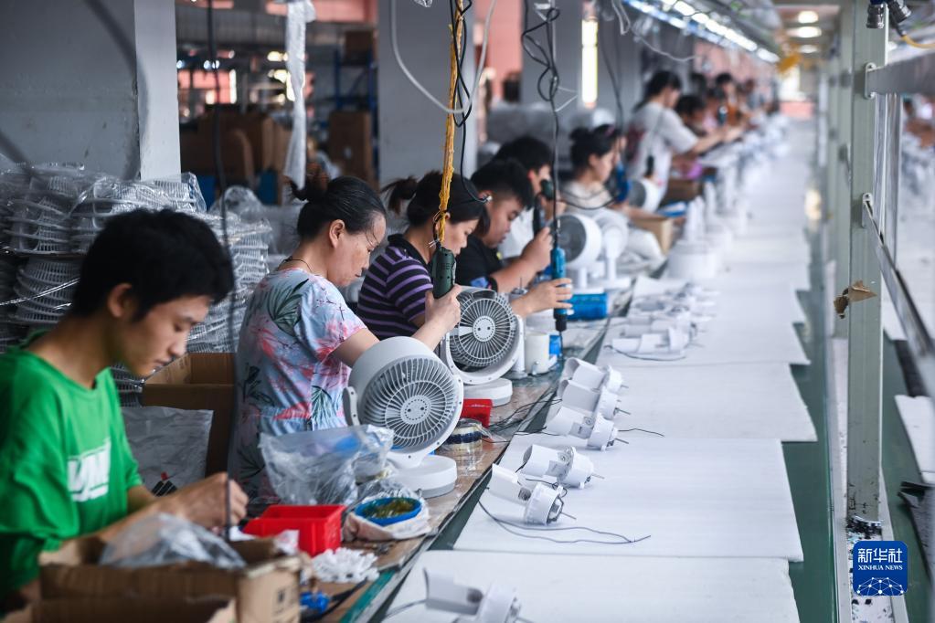 7月6日,工人在位于慈溪市的寧波榮電電器制造有限公司生產電風扇。