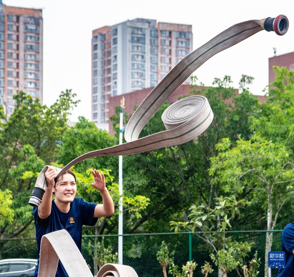 6月28日,熱依來·吉力力在進行消防專業體能訓練。