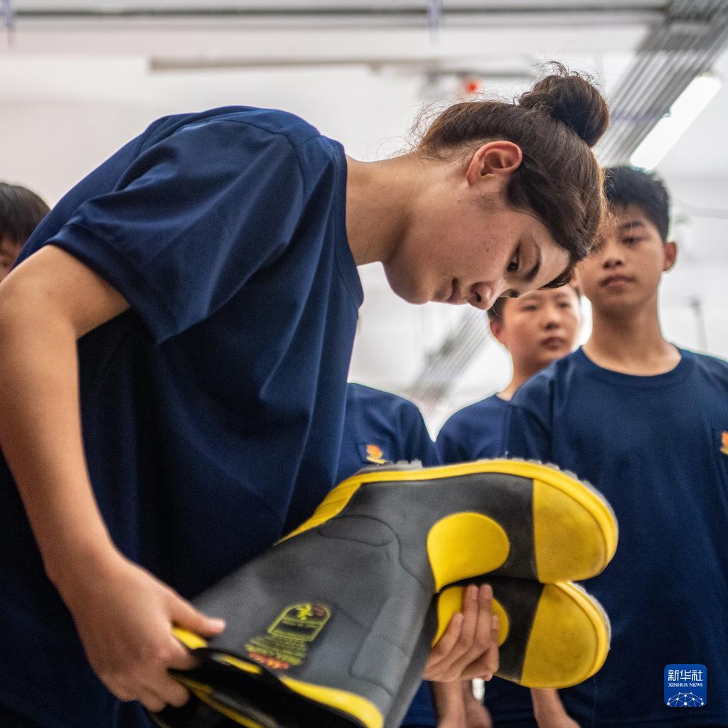 6月28日,熱依來·吉力力在建筑消防設備實訓課上整理消防裝備。