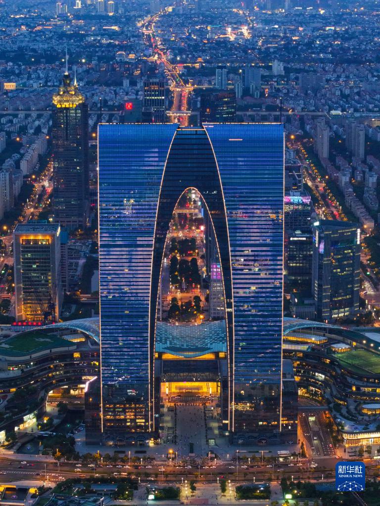 蘇州工業園區東方之門(7月3日攝,無人機照片)。