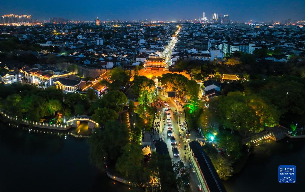 蘇州閶門夜景(4月10日攝,無人機(jī)照片)。