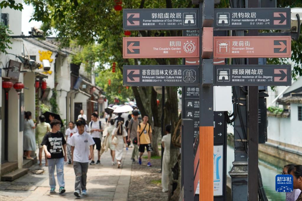 7月6日,游客在蘇州平江歷史街區休閑游玩。
