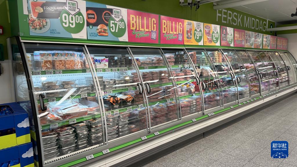 這是7月5日在挪威首都奧斯陸一家超市拍攝的三文魚等海產品。