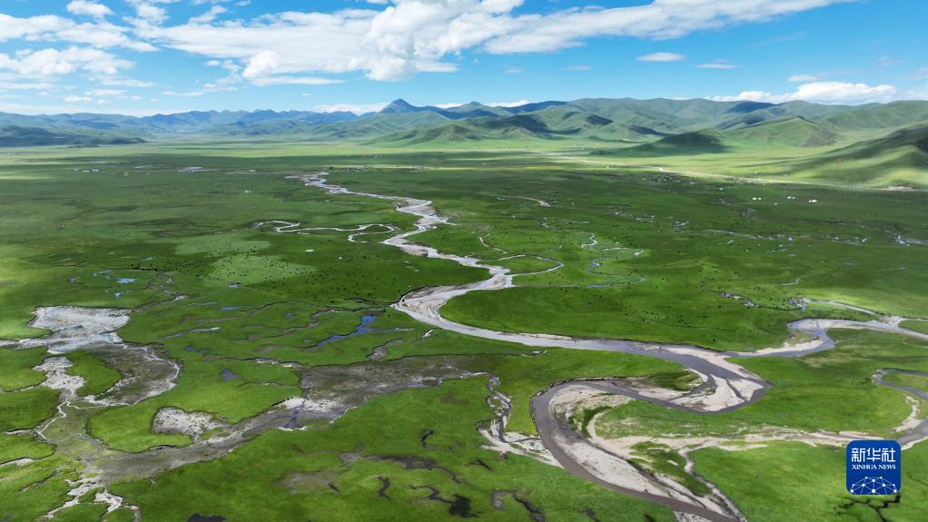 這是瑪曲縣阿萬倉濕地景色(7月6日攝,無人機(jī)照片)。