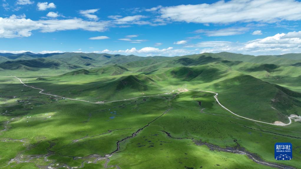 這是瑪曲縣阿萬倉濕地景色(7月6日攝,無人機照片)。