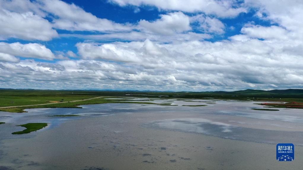 這是瑪曲縣河曲馬場的濕地景色(7月5日攝,無人機照片)。